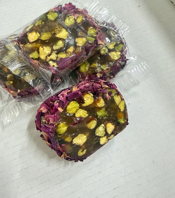 Inhoud: suiker, glucose, water, tarwezetmeel, mastiek, vanille, citroenzuur en pistache
